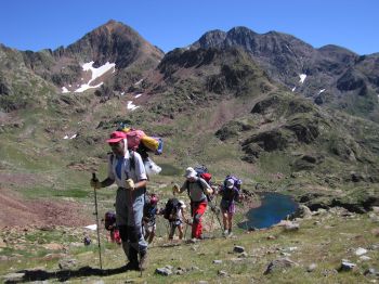 Una vez reagrupados y reanimados por el agua y el descanso decidimos qué hacer el resto del día. Finalmente decidimos pasar la noche en el camping de Areu ya que nos parece más fácil encontrar un sitio para cenar en Areu que en Alins y la posibilidad de abandonar el valle y bajar a Llavorsí o a Sort es menos atractiva.