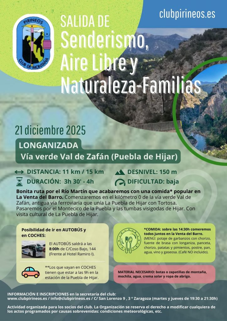 Las secciones de Senderismo, Aire libre y Naturaleza-Familias nos juntaremos la Longanizada y realizar una ruta por la vía verde Val de Zafán en Hijar.
