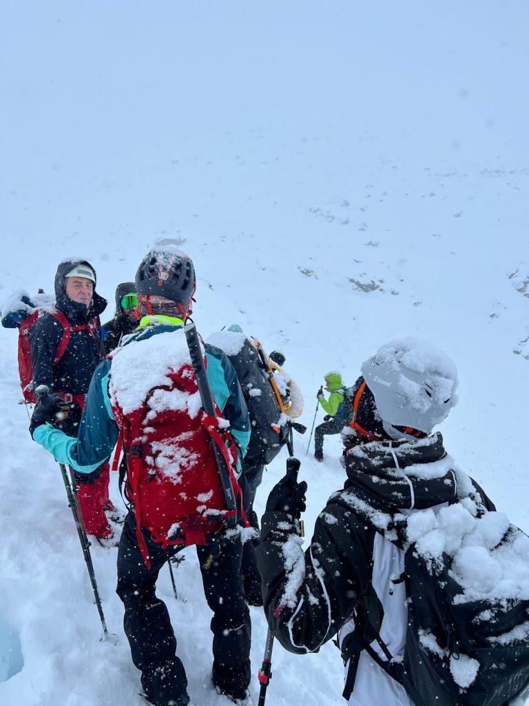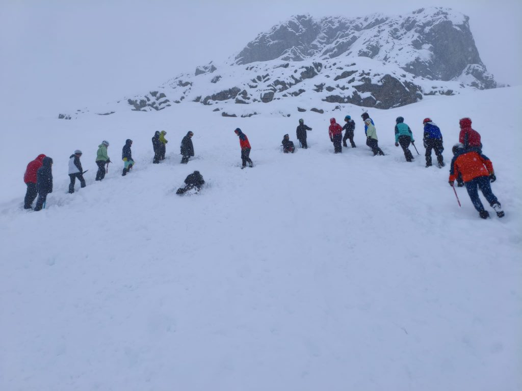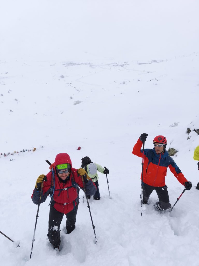 Nos dividimos en grupos y nos fuimos con las palas preparadas para desenterrar a quien hiciese falta. Aprendimos que, aunque la teoría es sencilla, es necesario estar en el terreno y entender cómo se comportan la nieve, los equipos y los cuerpos para poder interiorizar correctamente los pasos necesarios para rescatar a alguien en una situación tan límite.