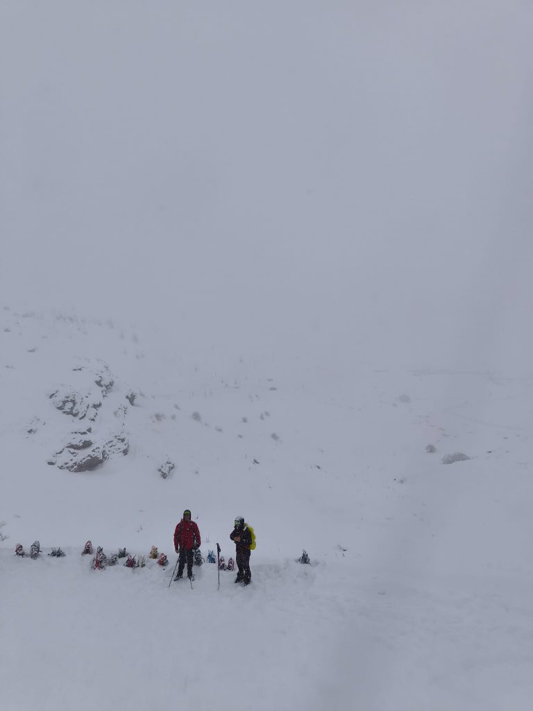 El domingo, a eso de las 07:30, los más madrugadores ya se movían por los pasillos del refugio. La noche nos había dejado unos cuantos centímetros extra de nieve y una buena dosis de ronquidos por habitación. Con la ropa y el equipo (casi)secos y tras un frugal desayuno salimos preparados para la segunda jornada del curso.