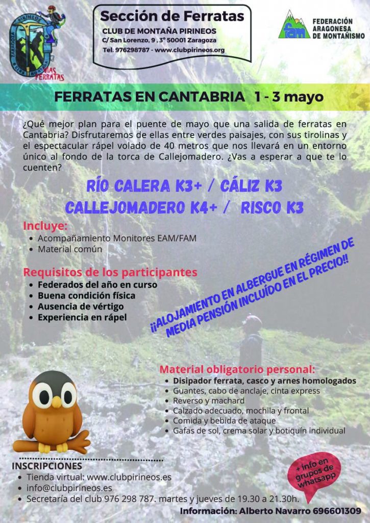 Y también en: info@clubpirineos.es o en la sede del club, c/ San Lorenzo 9 , 3 º Zaragoza (martes y jueves de 19:30 a 21:30h)