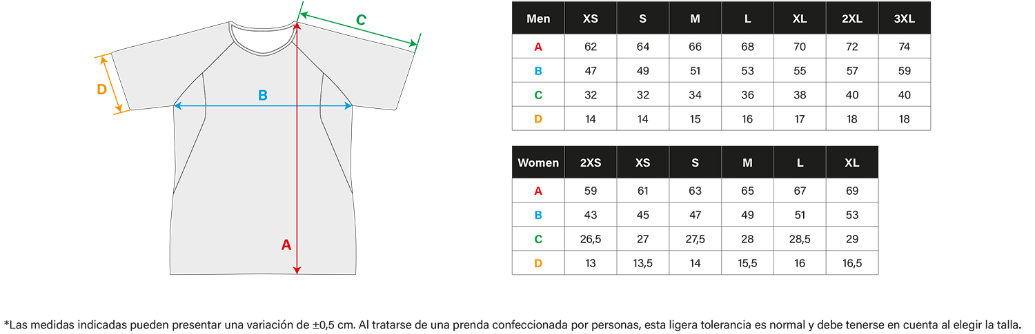 * Las tallas Junior son standard, para el resto de tallajes se indican en la imagen las medidas correspondientes por talla.